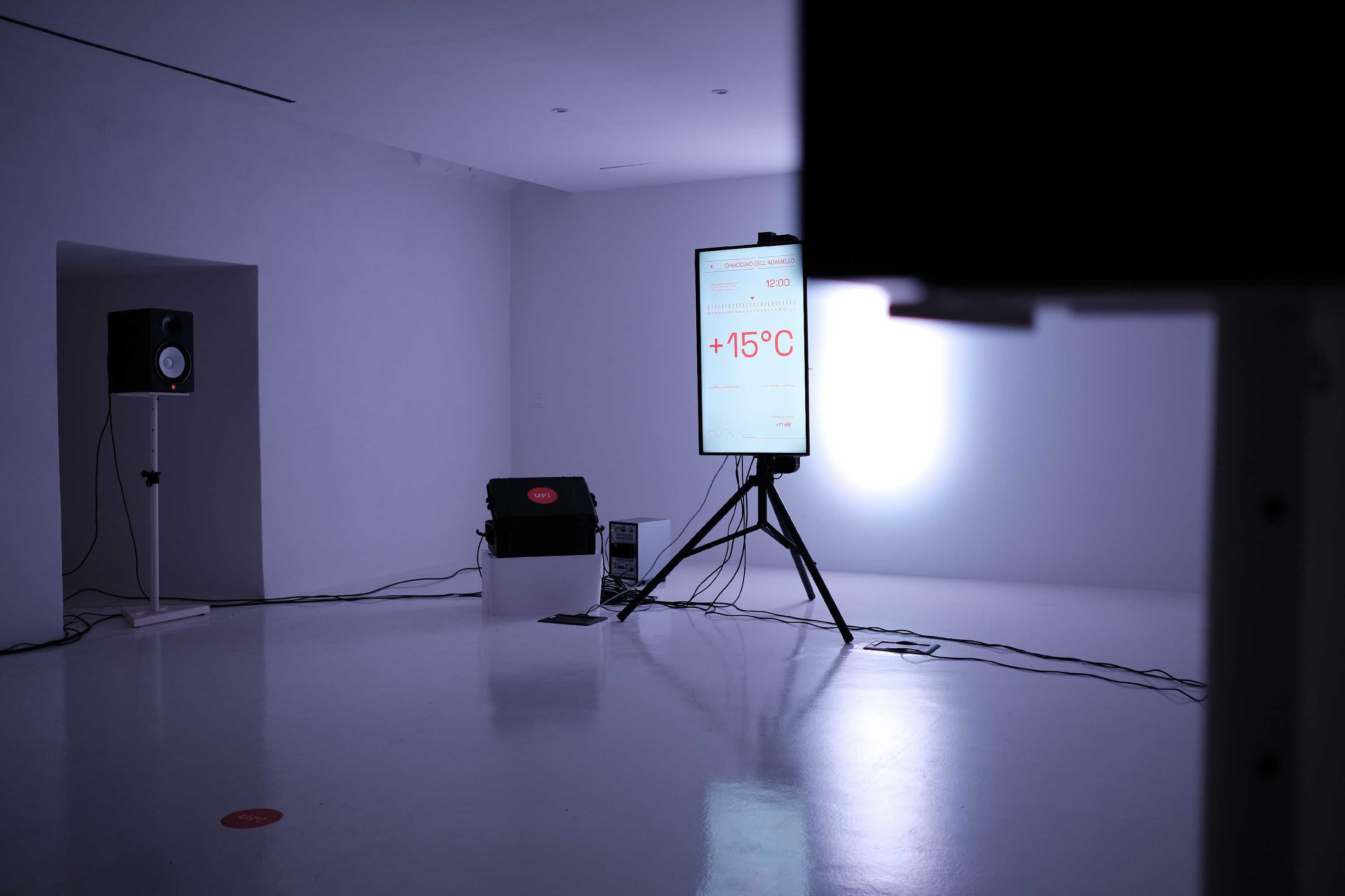 L'installazione mostra i dati scientifici raccolti attraverso una dimensione percettiva ed emotiva coinvolgente consentendo così' un punto di vista inedito sulle implicazioni e conseguenze negative del cambiamento climatico sugli ecosistemi fragili, Il 92% dei ghiacciai alpini rischia di scomparire entro la fine di questo secolo.
